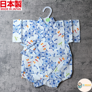 [現貨] 日本製 Mam 嬰兒白色麻葉蜻蜓圖案甚平連身衣/包屁衣 (60-80cm)